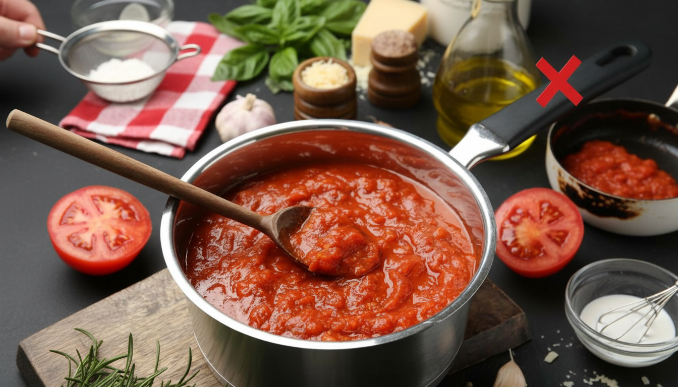 Ao engrossar um molho, algumas armadilhas podem comprometer o resultado final. Ficar atento a detalhes como deixar o fogo alto demais, usar um excesso de espessante, não mexer constantemente e adicionar ingredientes frios diretamente ao molho são erros que podem ser evitados.
