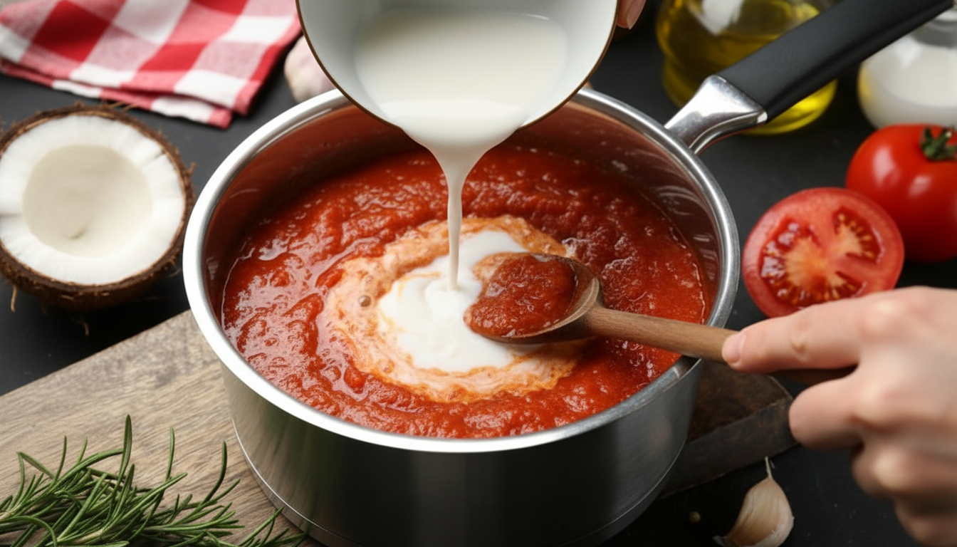 Se você busca uma alternativa sem lactose, o leite de coco é uma excelente escolha. Além de engrossar o molho, ele acrescenta um sabor suave e tropical que combina perfeitamente com uma diversidade de pratos.